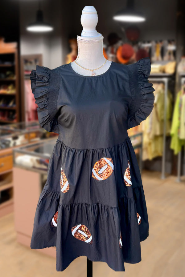 Solid Ruffle Sleeve Sequin Patch Mini Dress
